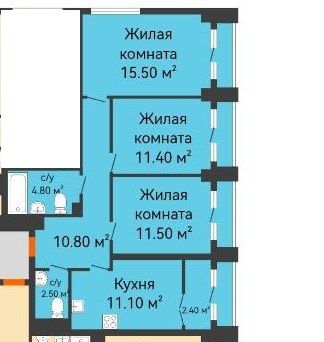 Площадь (кв.м.) | Общая: 68.8 Жилая: 38.4 Кухня: 11.1 Комнаты: 15.5+11.5+11.4 68.8 / 38.4 / 11.1 |
