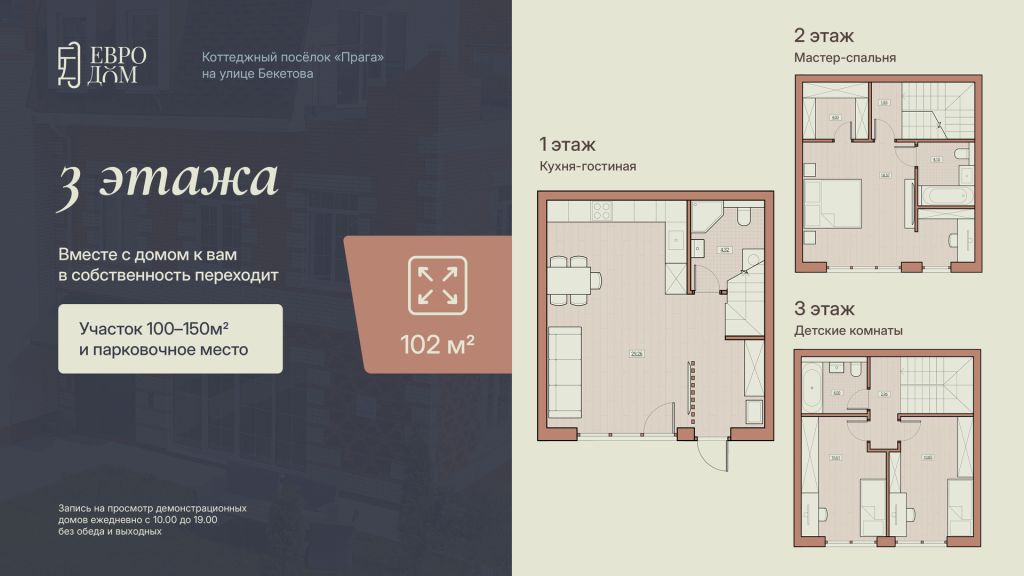 Трехэтажный дом для счастливой и приватной жизни. Современный и технологичный таунхаус со свободной планировкой, которую можно менять под свой стиль, без долгих бюрократических процессов. Просторные, светлые комнаты с большими окнами, два-три санузла, уютная придомовая территория (от 100 до 500 кв.м.), огороженная двухметровых забором, личное + гостевые парковочные мест — идеальное пространство для всей семьи. Дом продается без отделки, есть возможно выбрать вариант отделки от застройщика или подобрать таунхаус с ремонтом и мебелью под ключ. Есть варианты в стройке и готовые.