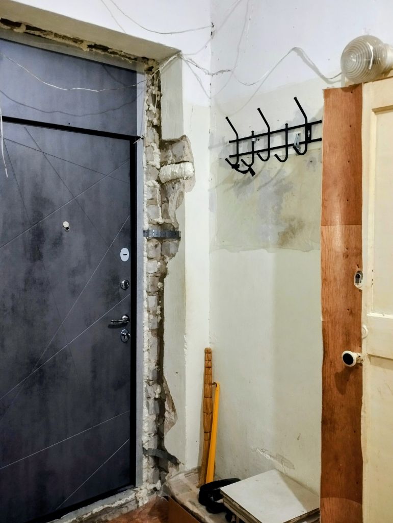 Хорошая прихожая, крепкая входная дверь.